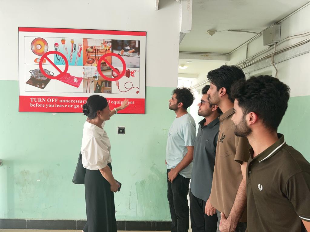 检查过程中,学院详细查看国际学生是否使用违章电器,是否存在乱拉乱接电线,是否存放易燃易爆物品,是否在宿舍给电动车电瓶充电,是否破坏床和衣柜等房间设施,是否随意将垃圾丢在楼道和公共洗衣房等公共通道。在与国际学生交谈中,学院领导重申宿舍管理规定,特别嘱咐她们要勤通风,多打扫卫生,合理安排时间,做到不扰民、不高空抛物,不使用违章电器,希望大家在假期期间保管好个人重要物品,外出旅行务必提前向班主任和学院报告和履行好请假手续,注意交通安全。同时,学院安全检查小组还查看了公寓楼内的消防通道、安全指示灯和指示牌、灭火器和消防栓等消防器材的排查记录和破损情况。
