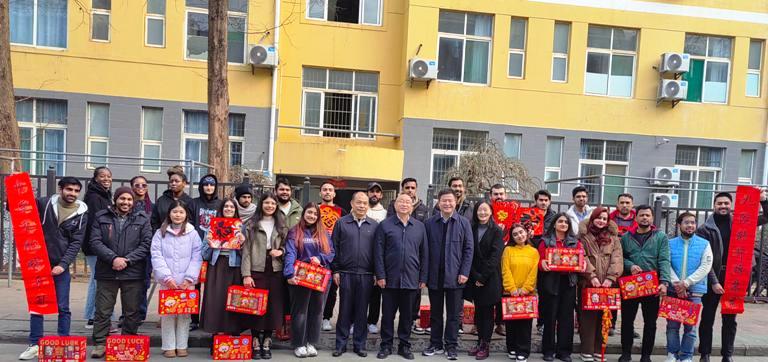 活动最后,陈小林与雷志强共同为留学生们分发了精心准备的春节慰问品。满载关怀的礼品不仅承载了学校的美好祝福,也让远离家乡的留学生们感受到家的温暖。