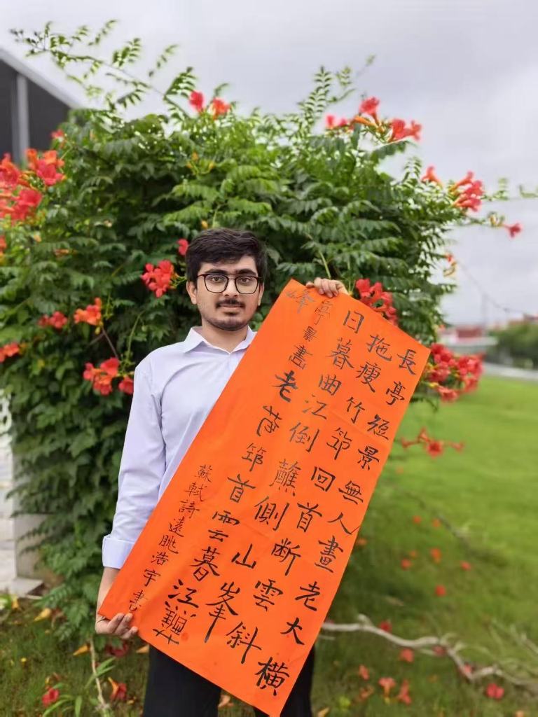 Good News | Haoyu (Muhammad Haris Iftikhar), International Student of Jiujiang University, Wins "Most Creative Award" at 2025 "Chinese Bridge" Global Foreigners' Chinese Calligraphy and Painting Exhibition!